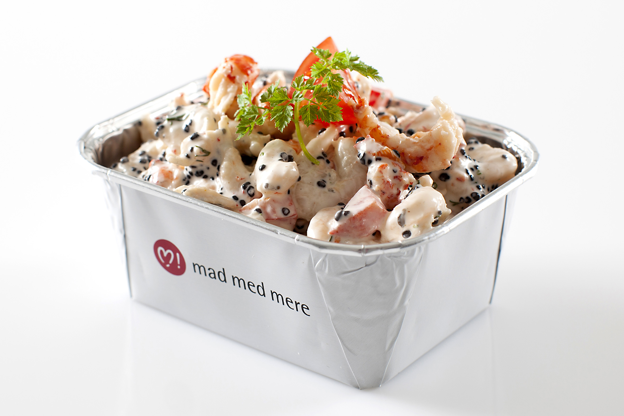 NB: Billedet viser et eksempel på skaldyrssalat.